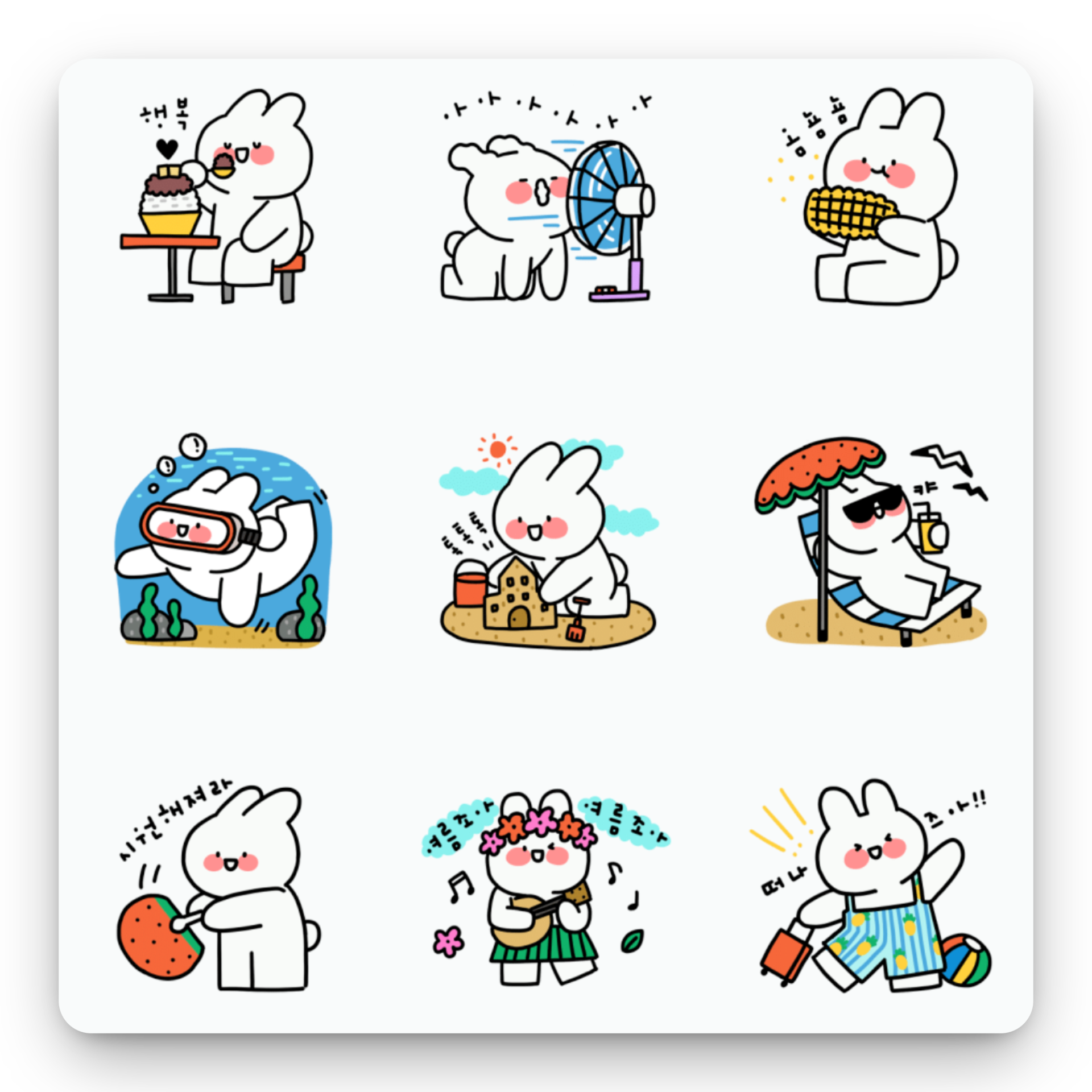 햇살을 만끽하며 신나게 여름을 즐기는 토끼, 보는 것만으로도 기분이 한층 업되네요! 더위에 지치기보단 즐기고 싶은 마음이 있는 날엔 이 귀여운 토끼를 소환해보세요!