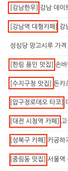 [00맛집], [00여행], [내돈내산] 같은 말머리를 제목 앞에 붙이면 뭔가 있어 보이긴 하죠. 그런데 이걸 매번 쓰다 보면, 블로그 알고리즘 입장에선 계속 같은 제목 패턴으로 인식하게 됩니다. 결국 다양한 주제를 다루고 있음에도 불구하고, 단조롭고 반복적인 콘텐츠처럼 보일 수 있는 거죠. 말머리는 정말 필요할 때만 쓰고, 그보다는 제목 자체를 더 흥미롭게 만드는 데 집중하는 편이 좋아요.