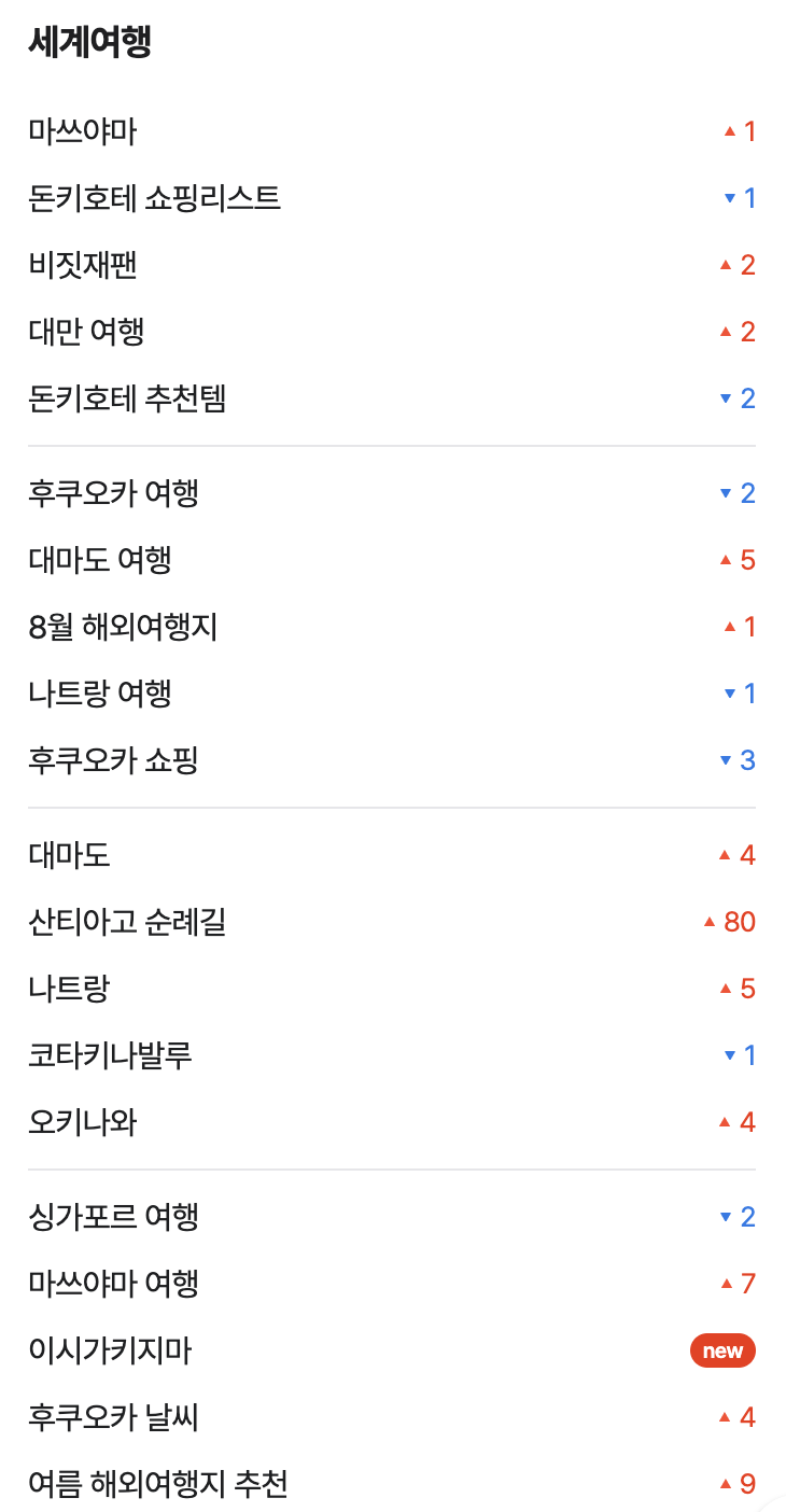 이 툴을 활용하면 요즘 뜨는 인기 키워드, 검색어 트렌드 등을 주제별로 확인할 수 있어 콘텐츠 기획 방향을 잡는데 매우 유용하답니다! 시의성을 반영해야하는 여행/맛집 같은 주제에서 빠르게 반영할 수 있죠.