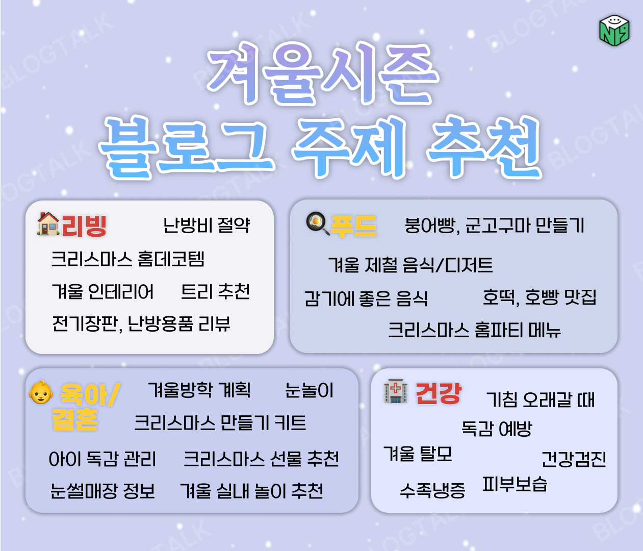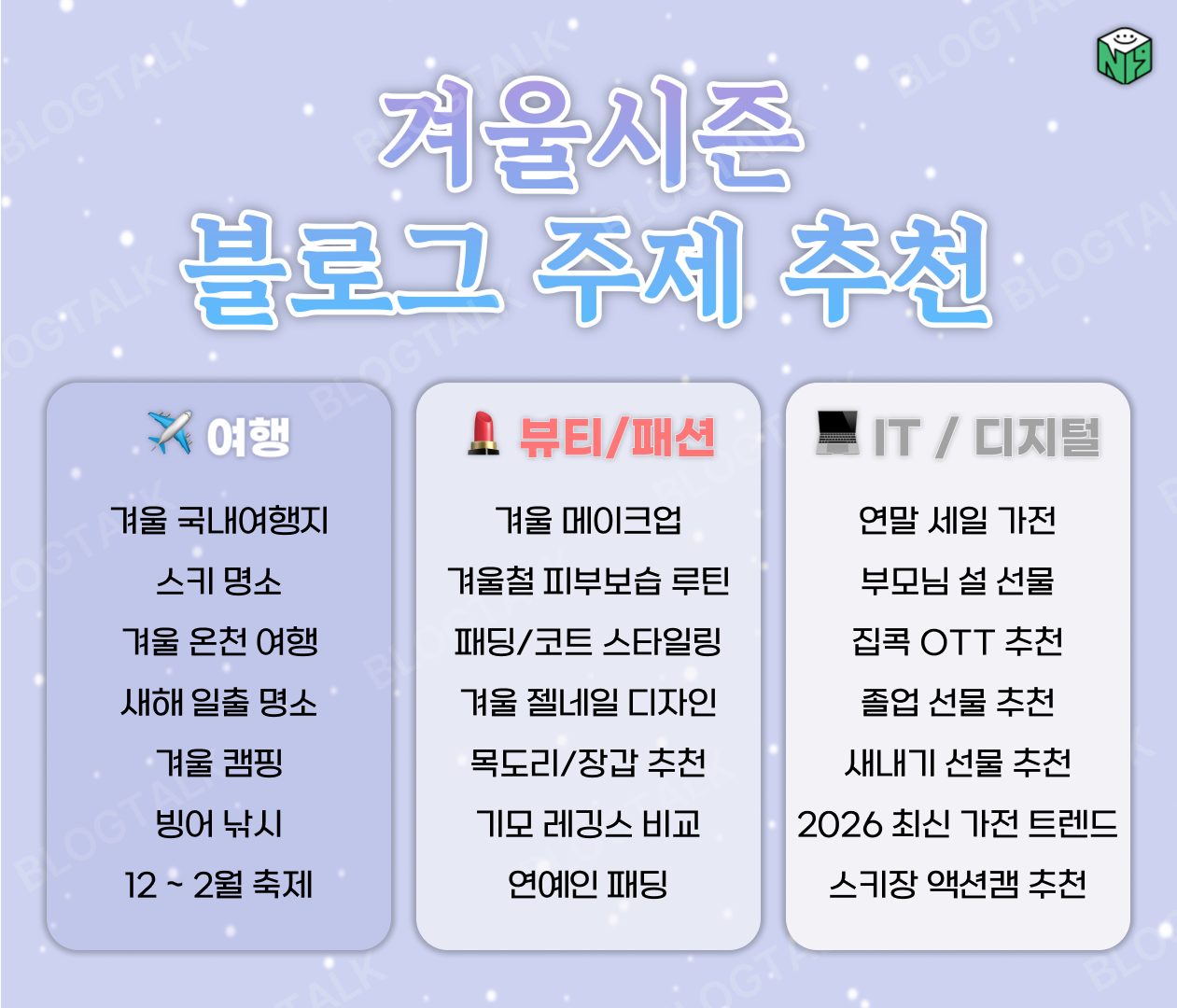 하지만 저희의 블로그는 멈출 수 없겠죠? 트렌드에 누구보다 민감해야 하는 SNS니까! 오늘도 따끈따끈한 겨울 시즌 키워드들을 한가득 뽑아드릴게요!🔥