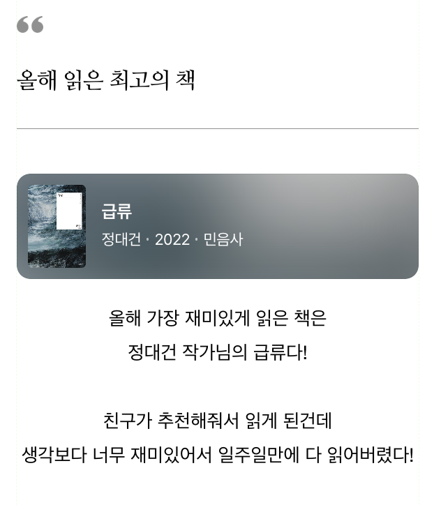 - 올해 읽은 책 중 가장 기억에 남는 책