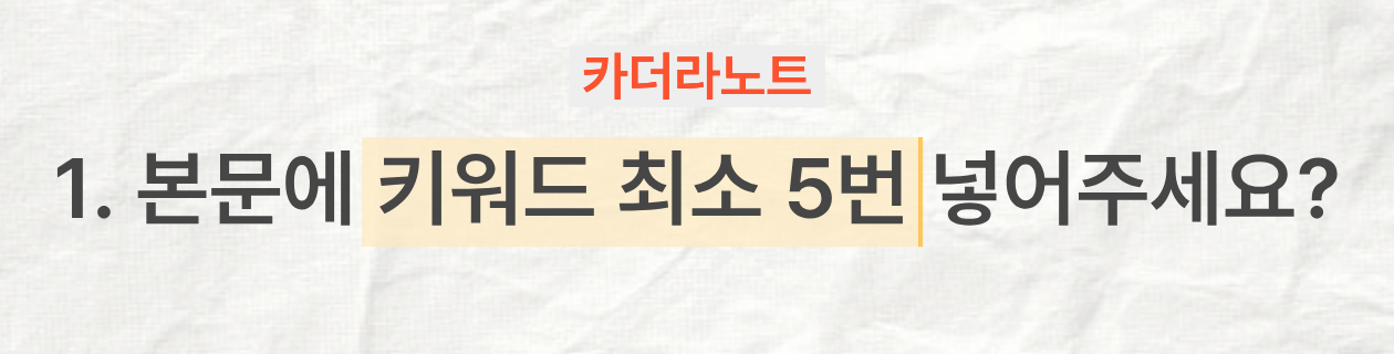 과거의 저도 그렇게 생각했습니다. 다다익선이란 생각으로 키워드를 마구 넣었죠. 블로그를 제대로 하기 전엔 특히 더 그랬던 것 같아요. 문맥이고 뭐고 그냥 욱여넣는 식이었어요. 왜냐하면 인터넷에 떠도는 소문 있죠? 제목에 쓴 키워드는 무조건 본문에 5회 반복해야 한다는. 뭐 이런 카더라를 철석같이 믿고 있었기 때문이었어요.